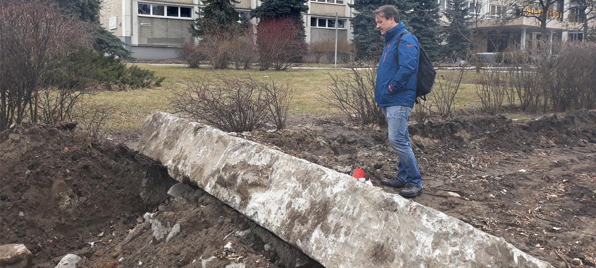 С внуком Женей — коренным брестчанином Евгением Бганцевым — мы встречаемся на углу бульвара Космонавтов и Пушкинской. Земля здесь разъезжена техникой, лежит одна большая плита. Вот на этом месте и был каштан, говорит Евгений: