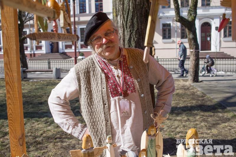 Народны майстар Рэспублікі Беларусь Уладзімір Чыквін з Кобрына прывёз свае драўляныя працы. «Яны з беларускім акцэнтам, бо я з Беларусі і ўсё раблю па-беларуску, не магу інакш», — кажа ён.