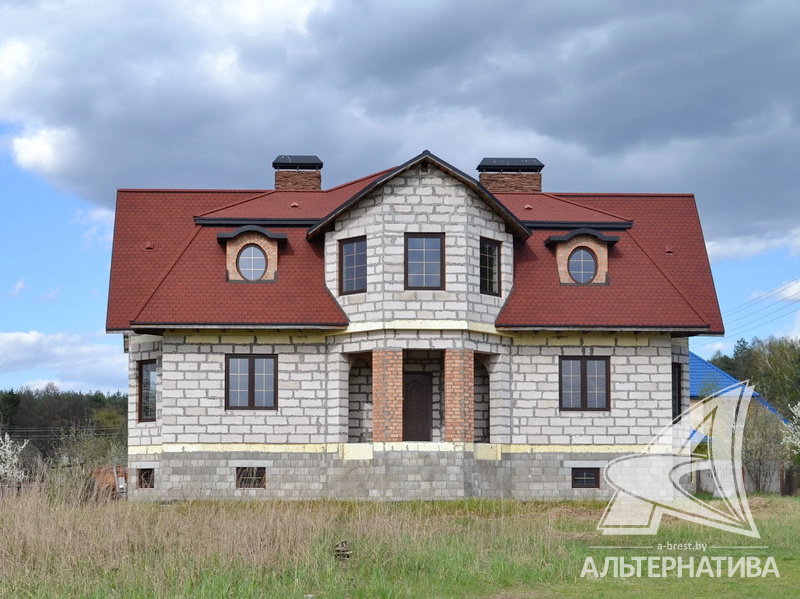 Оригинальный вид зданию придает сложная конструкция крыши и эркерная часть. Хозяин готов рассмотреть любые предложения, в том числе обмен на квартиру в Минске.
