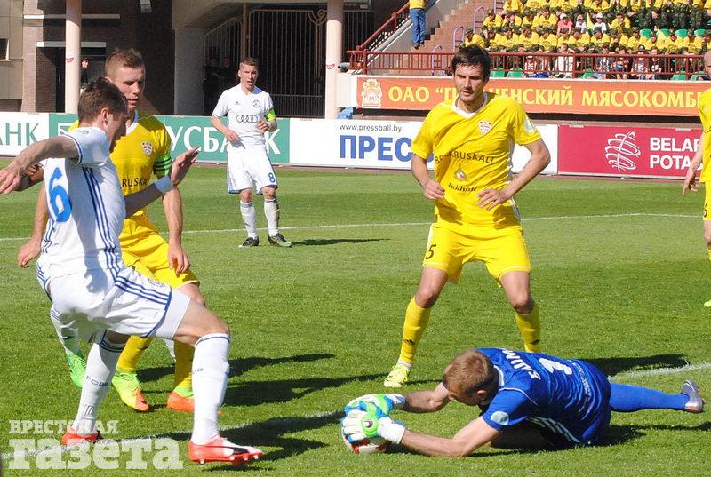 Голевым оказался первый же удар солигорчан в створ ворот «Динамо». Вышедший на замену молодой талант «горняков» Лисакович пробил головой после навеса Багарича. Малерб в отчаянном прыжке пытался достать мяч, но тщетно. Через 3 оборота секундной стрелки все тот же Лисакович мог отличиться еще раз и, пожалуй, похоронить надежды динамовцев на успех. Мяч после его мощного удара прошел в считаных сантиметрах выше ворот. Похоже, фортуна уже тогда выбрала из двух противоборствующих команд брестчан.