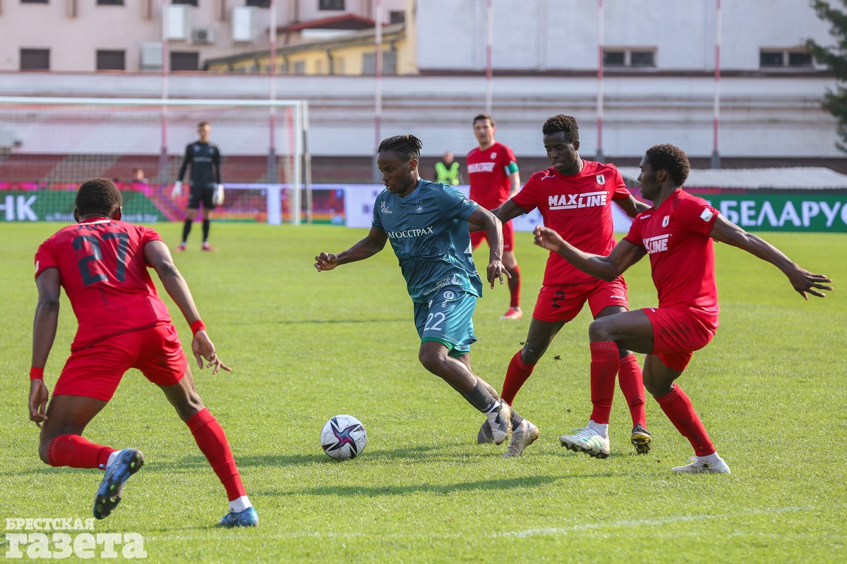 Брестчане открыли счет уже на первой минуте, забив один из самых быстрых голов этого чемпионата. Денис Лаптев ворвался в штрафную и пробил в голкипера, но спустя несколько секунд в доигровке эпизода головой переправил мяч в сетку.